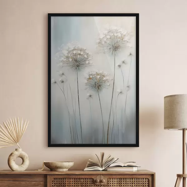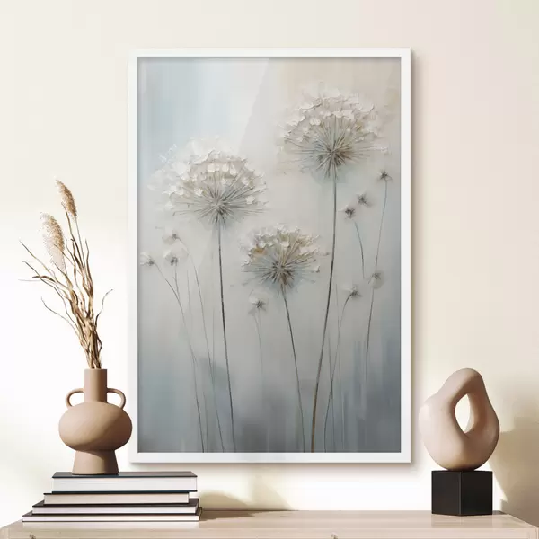 Poster Stile pittorico materico di denti di leone su uno sfondo morbido blu e bianco Nr f47855