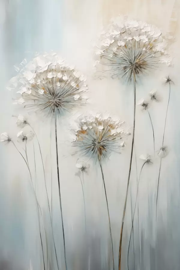 Poster Stile pittorico materico di denti di leone su uno sfondo morbido blu e bianco Nr f47855