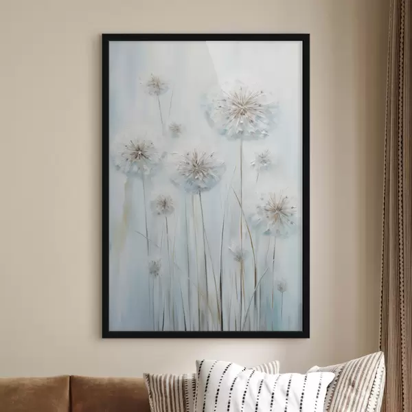Poster Stile pittorico materico di denti di leone su uno sfondo morbido blu e bianco f47856