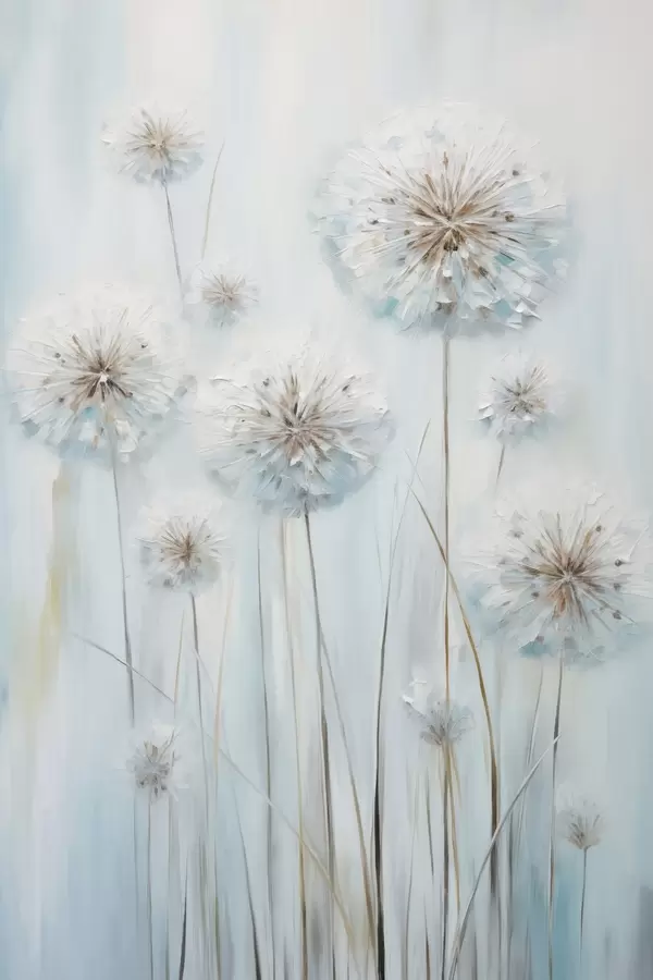 Poster Stile pittorico materico di denti di leone su uno sfondo morbido blu e bianco Nr f47856