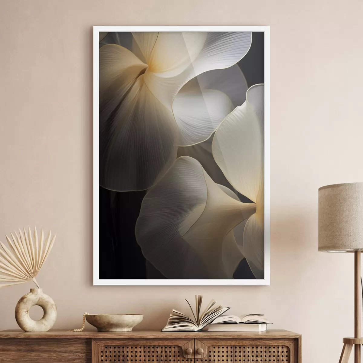 Poster Petali astratti fluidi e traslucidi con linee delicate, su sfondo scuro Nr f47859