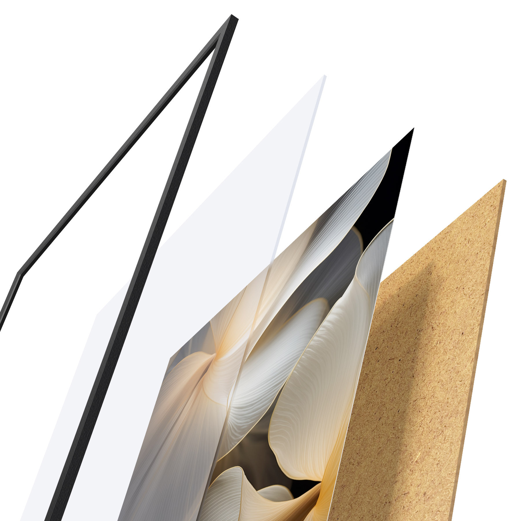 Il poster è composto da cornice, plexiglass, immagine stampata e supporto in truciolato. Il poster può essere immediatamente appeso alla parete grazie ai supporti sul retro.
