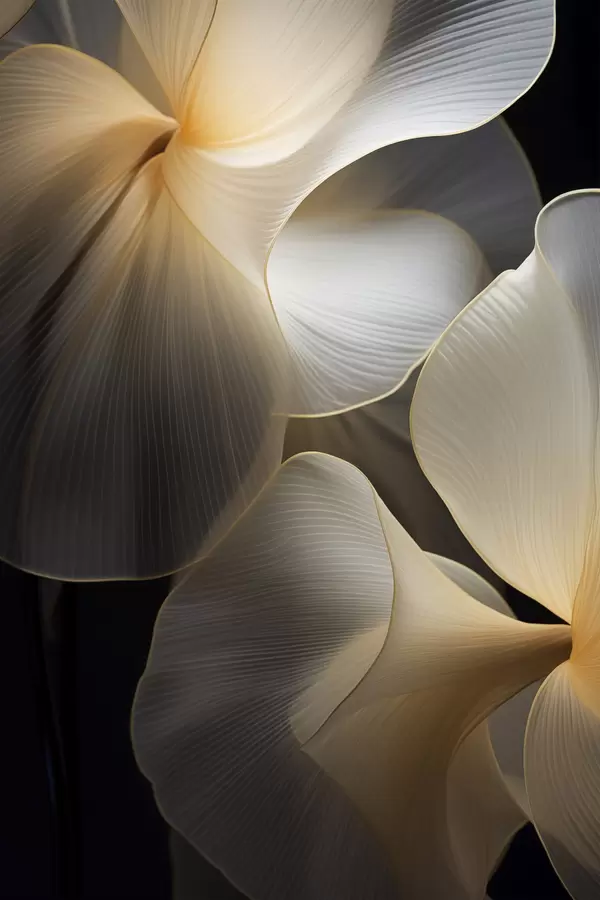 Poster Petali astratti fluidi e traslucidi con linee delicate, su sfondo scuro Nr f47859