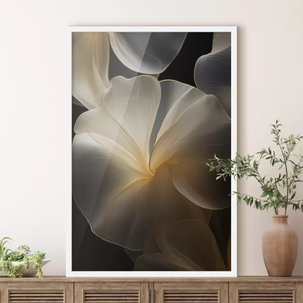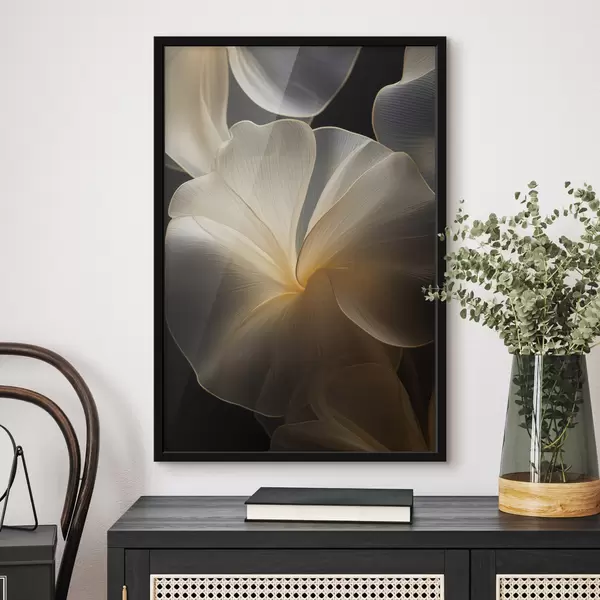 Poster Petali astratti fluidi e traslucidi con linee delicate, su sfondo scuro Nr f47860