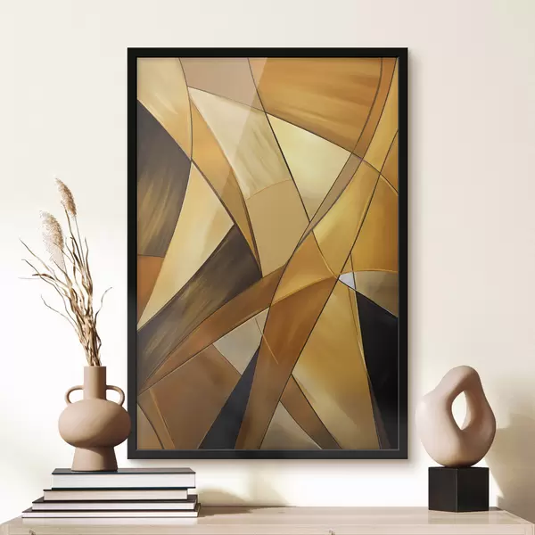 Poster Forme geometriche astratte nei toni dell'arancione, del marrone e del bianco con contorni sottili su uno sfondo strutturato Nr f47864