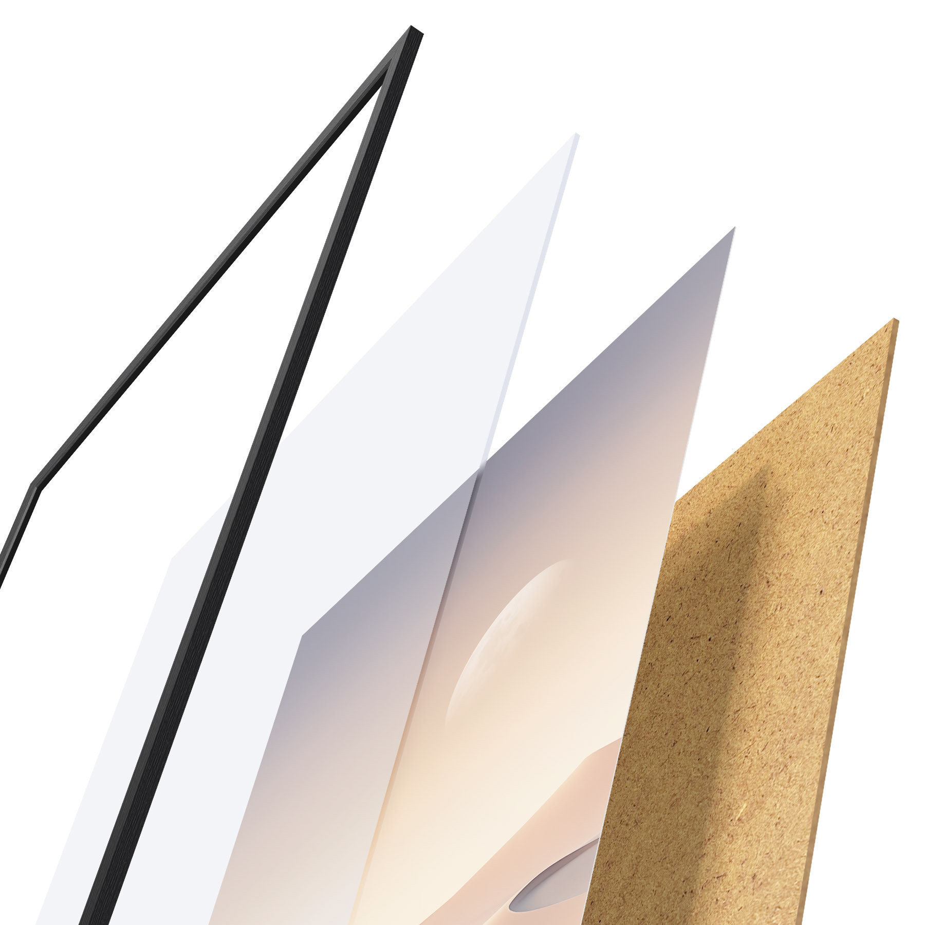 Il poster è composto da cornice, plexiglass, immagine stampata e supporto in truciolato. Il poster può essere immediatamente appeso alla parete grazie ai supporti sul retro.