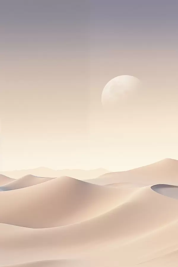 Poster Un paesaggio desertico con dune di sabbia ondulate sotto un cielo dai colori tenui, montagne lontane sullo sfondo Nr f47866