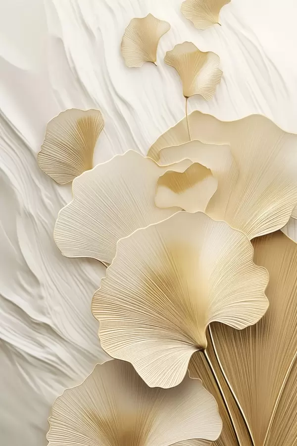 Poster Foglie astratte di ginkgo su uno sfondo leggero e strutturato, composizione elegante e astratta f47868
