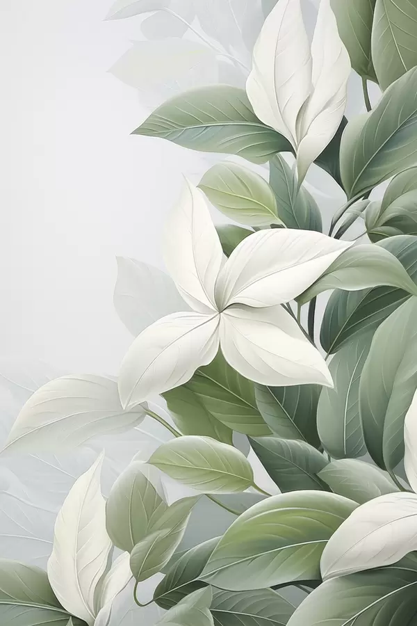 Poster Fiori bianchi con foglie verdi, sfondo pastello Nr f47870
