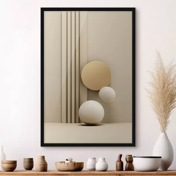 Poster Astratto beige arte moderna con linee verticali e sfere Nr f47871