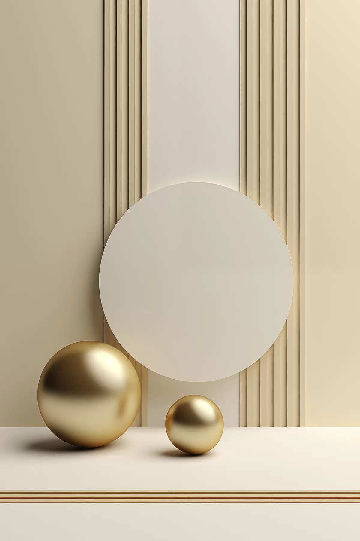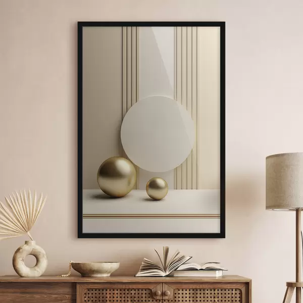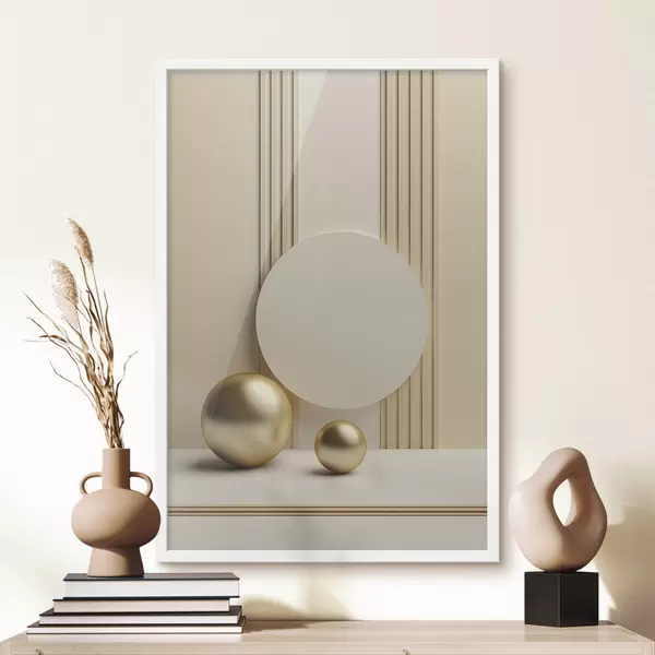 Poster Astratto beige arte moderna con linee verticali e sfere Nr f47872