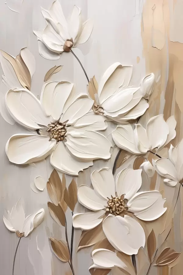 Poster Fiori bianchi astratti con petali testurizzati, su uno sfondo neutro con sottili pennellate imitazione Nr f47873