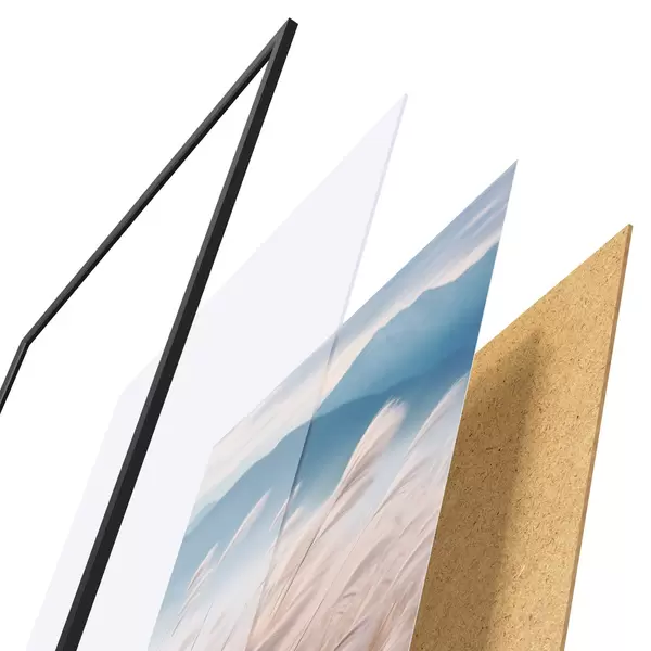 Il poster è composto da cornice, plexiglass, immagine stampata e supporto in truciolato. Il poster può essere immediatamente appeso alla parete grazie ai supporti sul retro.