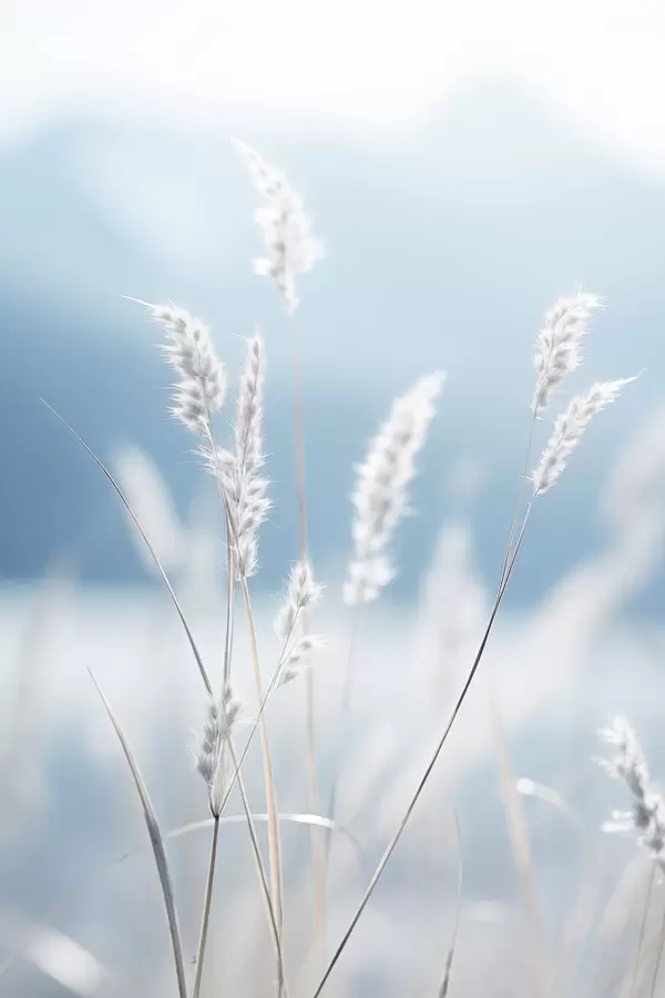 Poster Erba bianca e soffice su uno sfondo di cielo azzurro, con una profondità di campo ridotta. Nr f47880