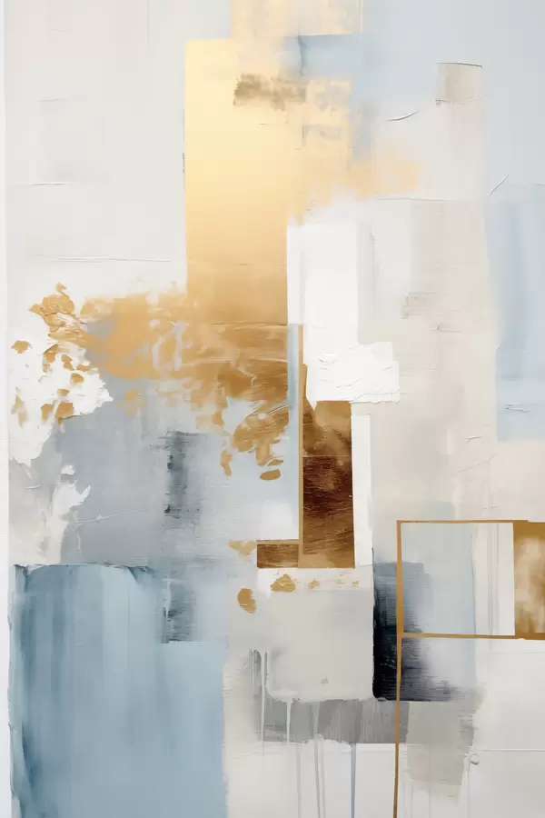 Poster Forme geometriche astratte con colori giallo, blu e bianco, composizione minimalista e materica Nr f47881