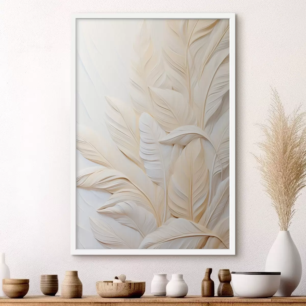 Poster Piume color crema sovrapposte l'una all'altra, con uno sfondo morbido e chiaro f47883