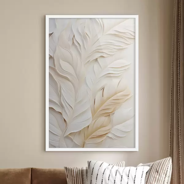 Poster Piume color crema sovrapposte l'una all'altra, con uno sfondo morbido e chiaro f47884