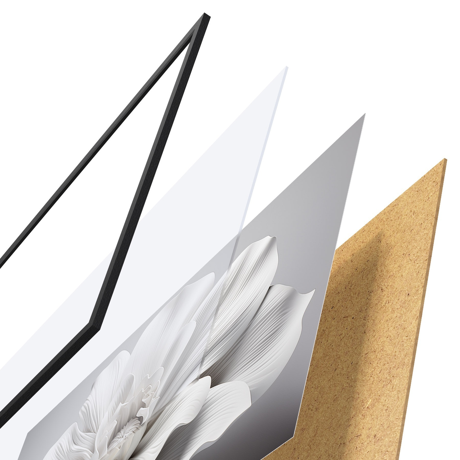 Il poster è composto da cornice, plexiglass, immagine stampata e supporto in truciolato. Il poster può essere immediatamente appeso alla parete grazie ai supporti sul retro.