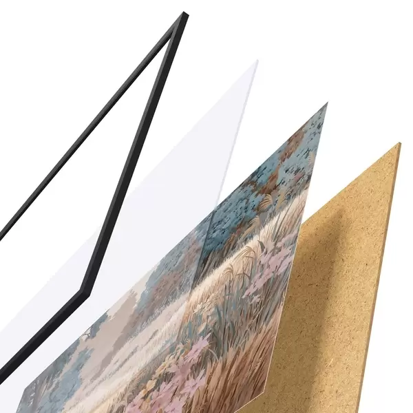 Il poster è composto da cornice, plexiglass, immagine stampata e supporto in truciolato. Il poster può essere immediatamente appeso alla parete grazie ai supporti sul retro.