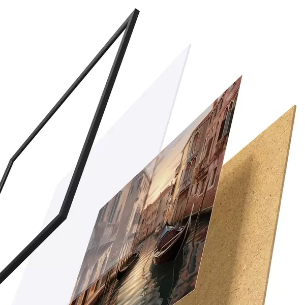 Il poster è composto da cornice, plexiglass, immagine stampata e supporto in truciolato. Il poster può essere immediatamente appeso alla parete grazie ai supporti sul retro.