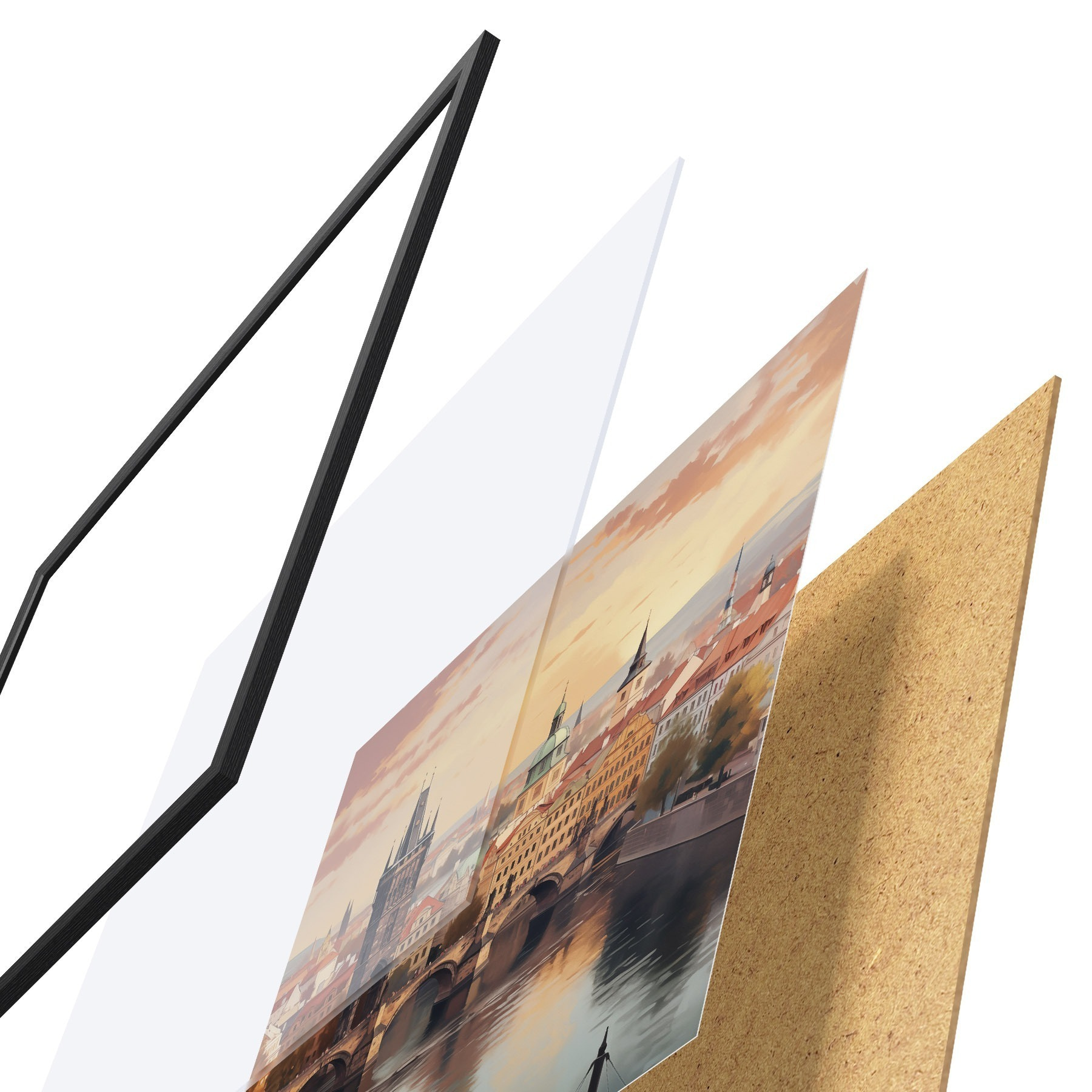 Il poster è composto da cornice, plexiglass, immagine stampata e supporto in truciolato. Il poster può essere immediatamente appeso alla parete grazie ai supporti sul retro.