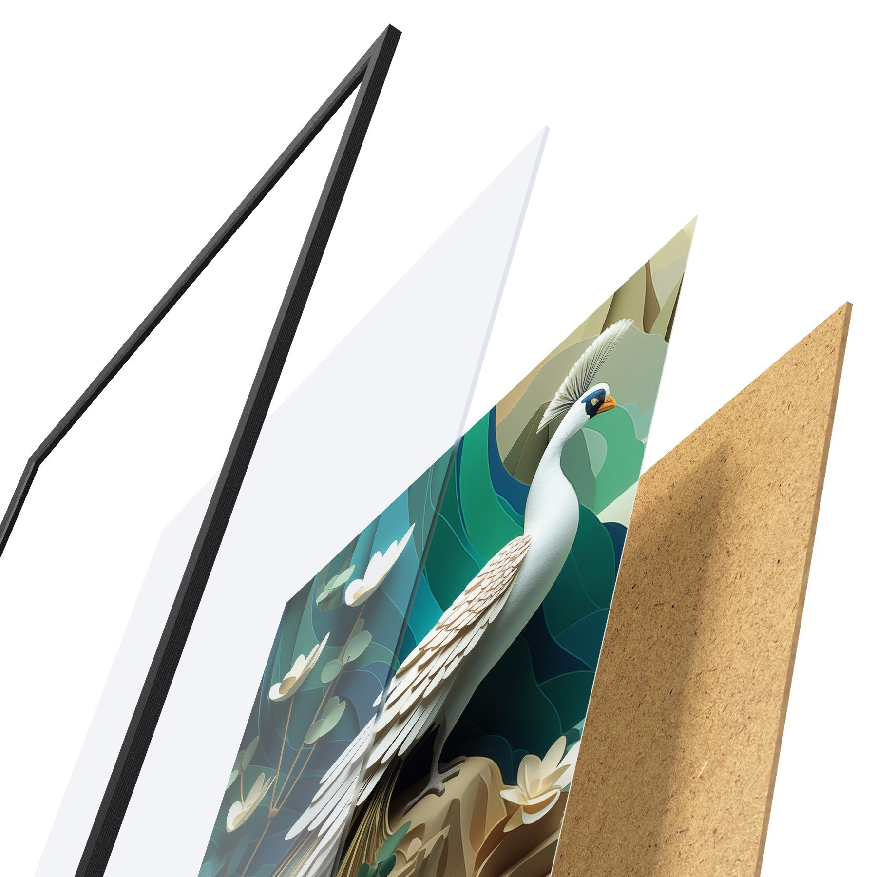 Il poster è composto da cornice, plexiglass, immagine stampata e supporto in truciolato. Il poster può essere immediatamente appeso alla parete grazie ai supporti sul retro.