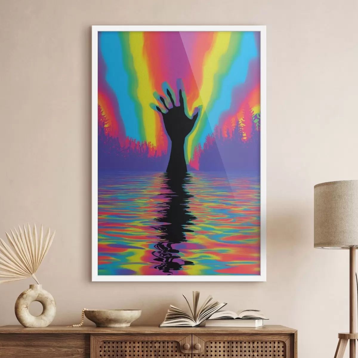 Poster Sagoma di una mano sopra l'acqua f47903