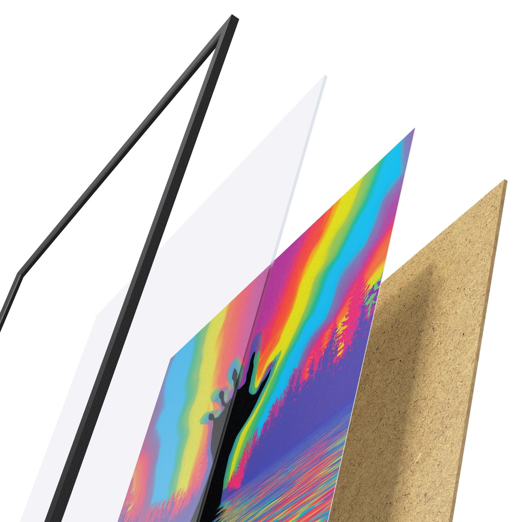 Il poster è composto da cornice, plexiglass, immagine stampata e supporto in truciolato. Il poster può essere immediatamente appeso alla parete grazie ai supporti sul retro.