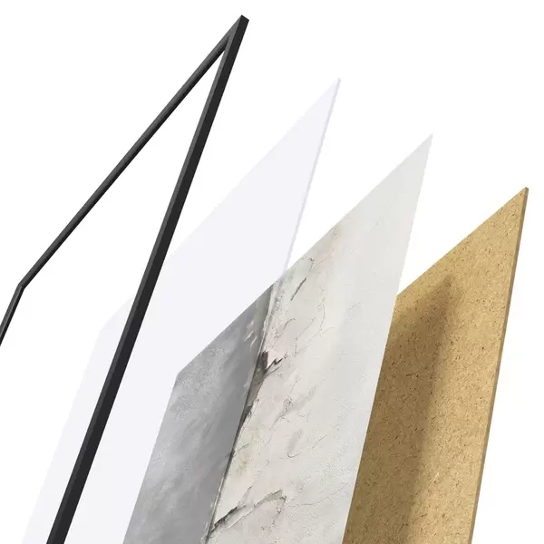Il poster è composto da cornice, plexiglass, immagine stampata e supporto in truciolato. Il poster può essere immediatamente appeso alla parete grazie ai supporti sul retro.