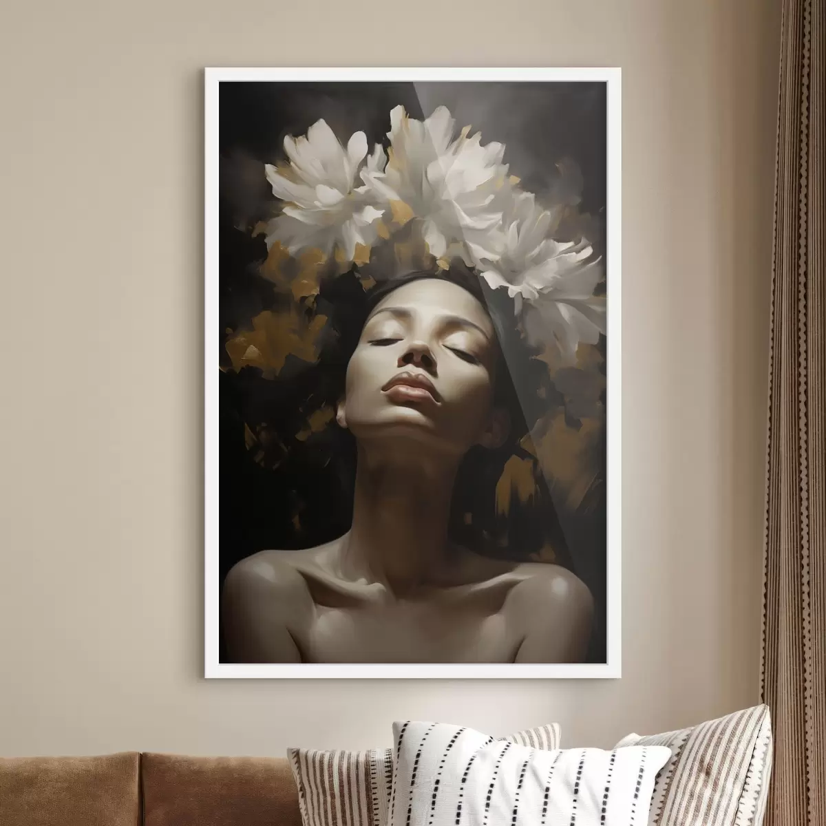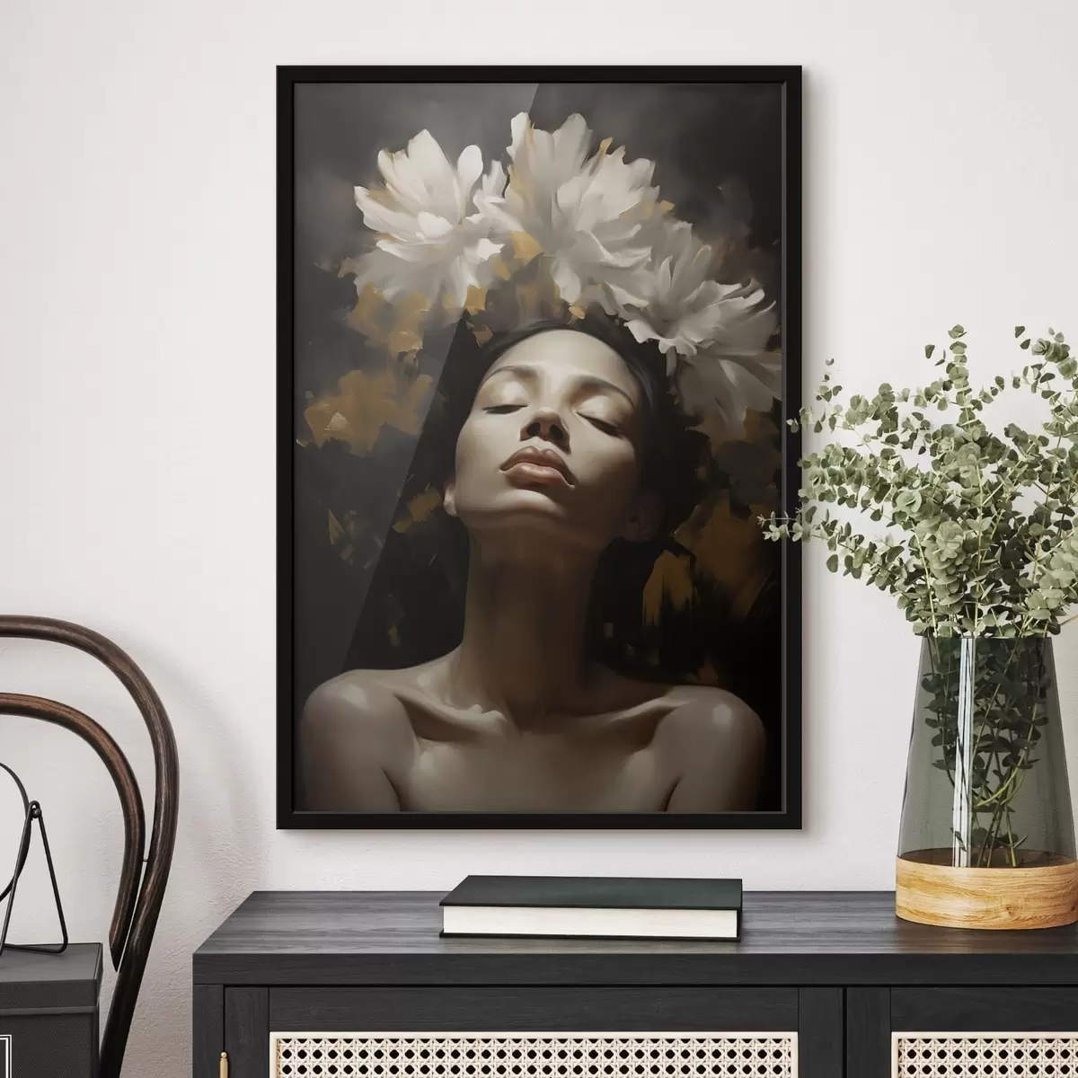Poster Ritratto femminile con fiori bianchi f47918