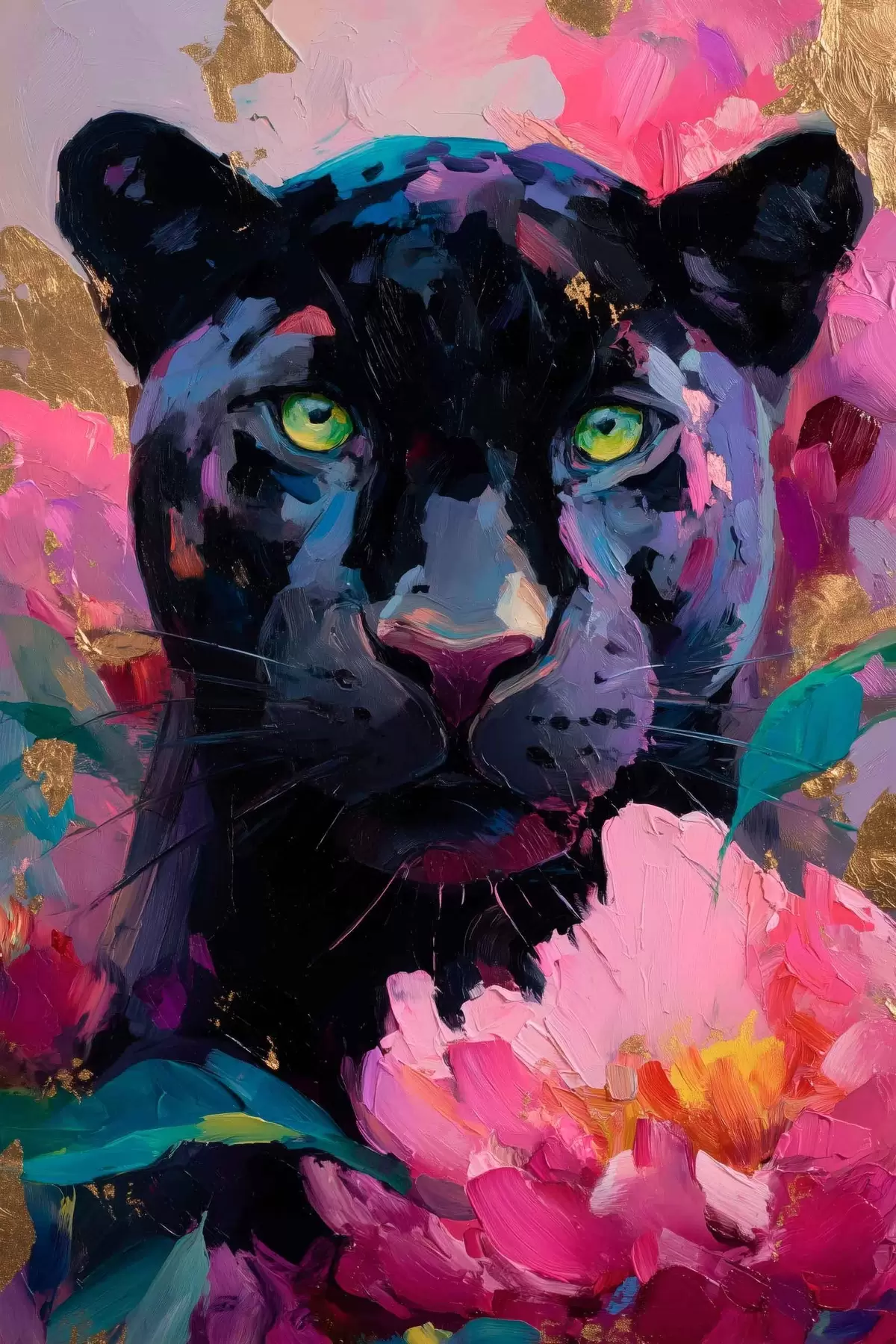 Poster pantera nera tra le peonie Nr f47935
