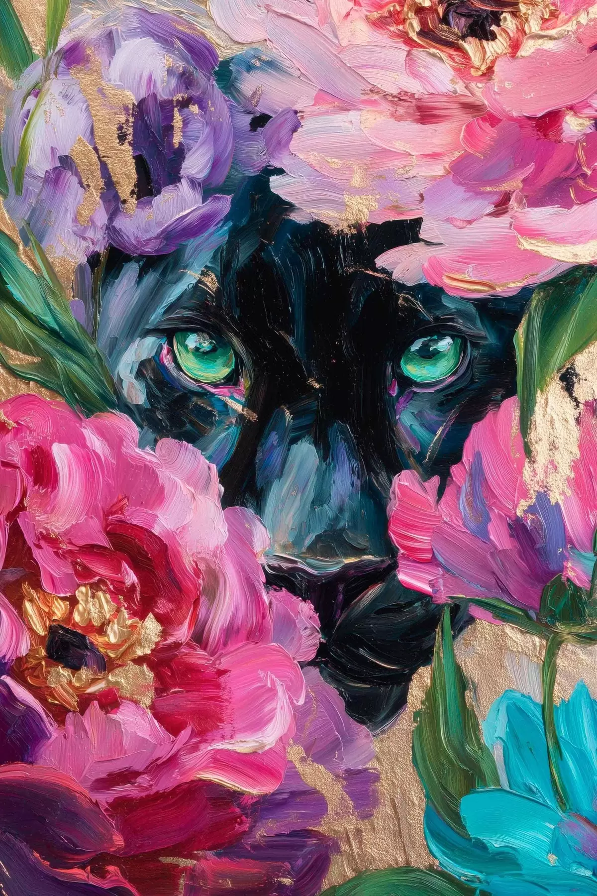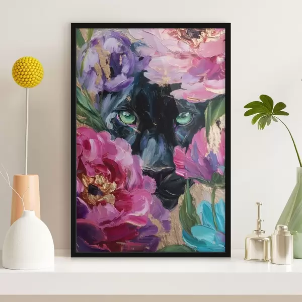 Poster una pantera nera fa capolino tra le peonie Nr f47936