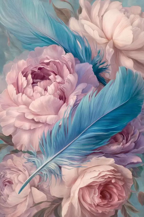 Poster piume tra le peonie f47940