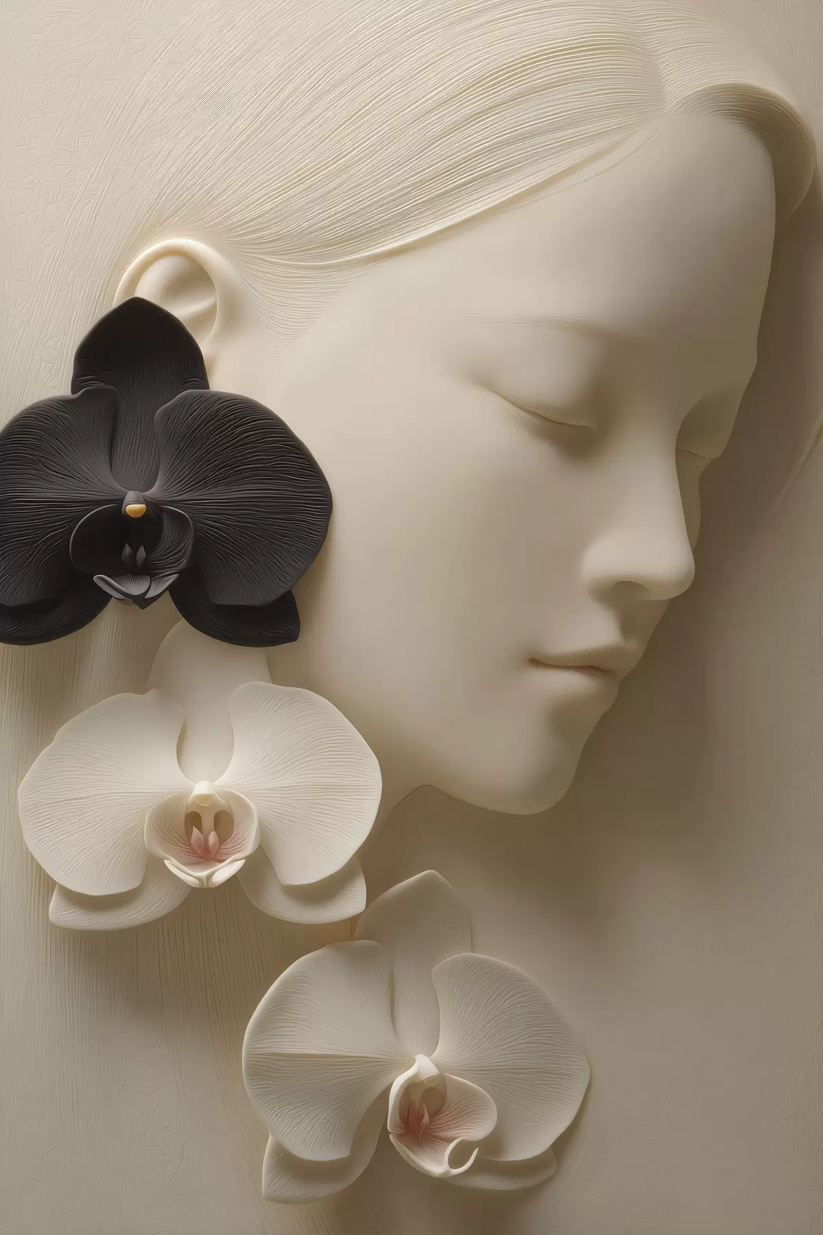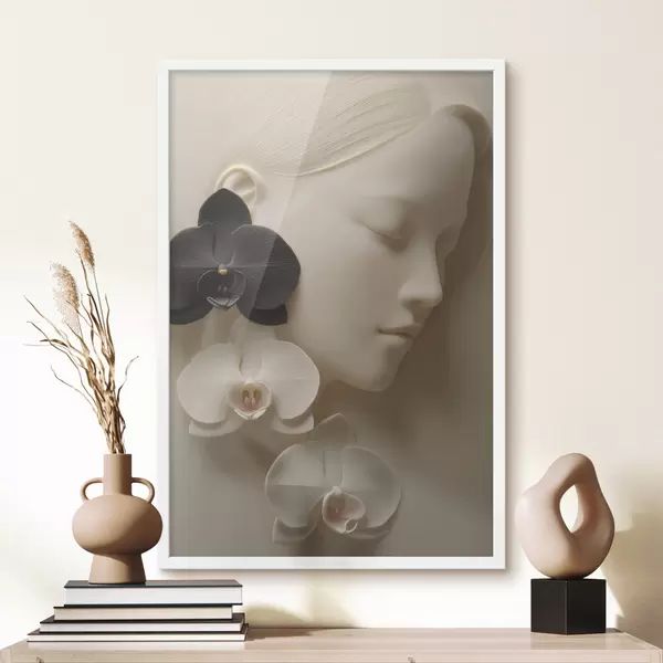 Poster ragazza con orchidee in stile bassorilievo f47941