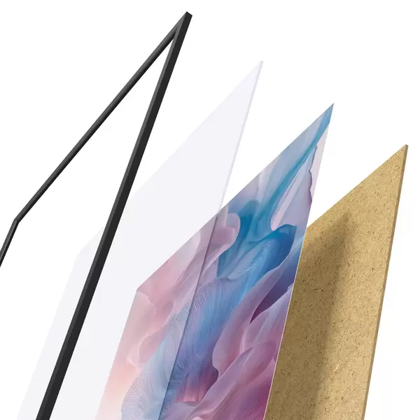 Il poster è composto da cornice, plexiglass, immagine stampata e supporto in truciolato. Il poster può essere immediatamente appeso alla parete grazie ai supporti sul retro.