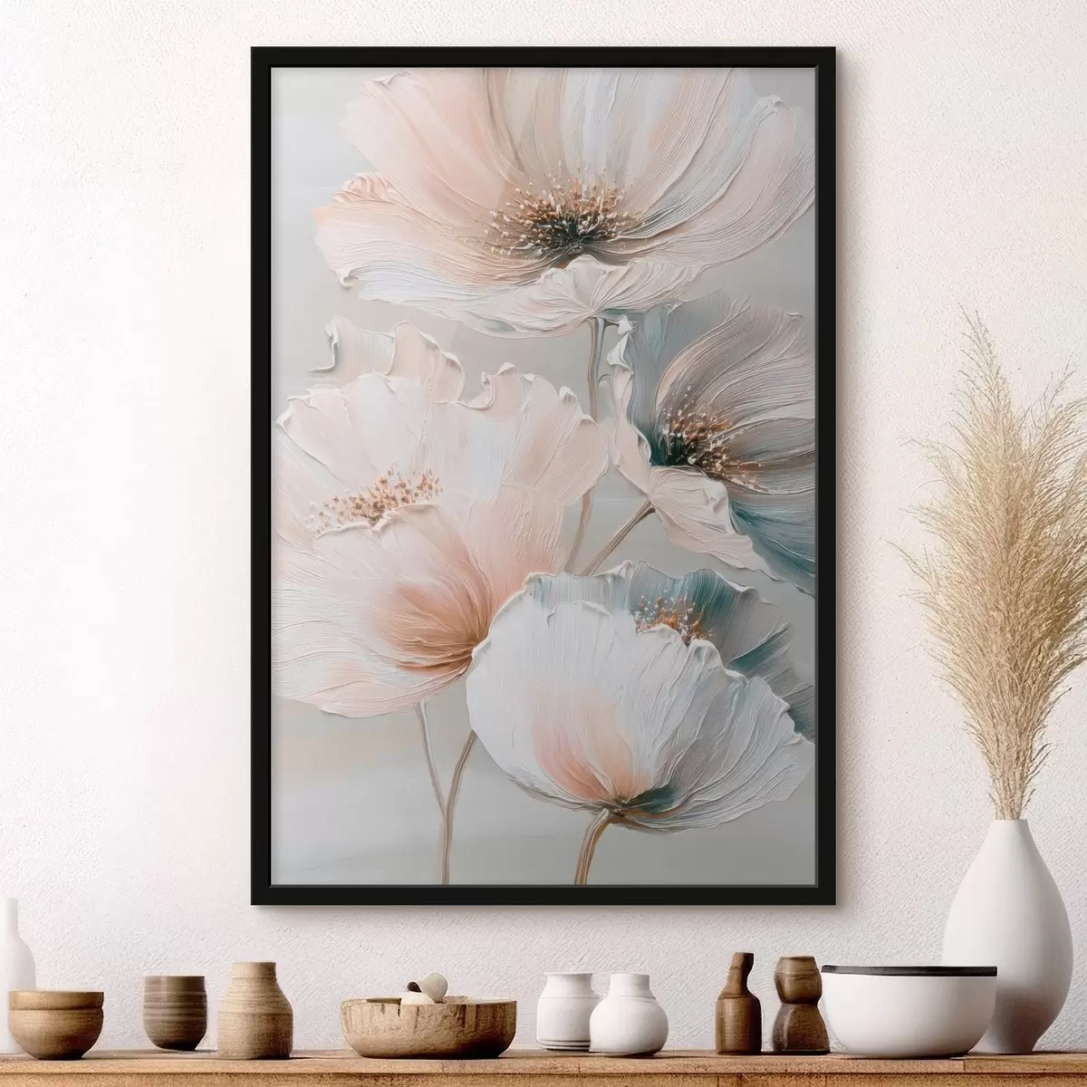 Poster Composizione floreale con pennellate materiche in una palette di colori beige-rosa f47961