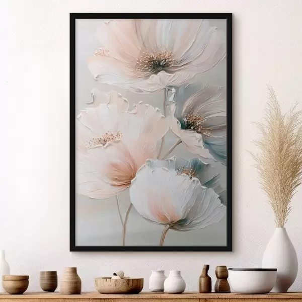 Poster Composizione floreale con pennellate materiche in una palette di colori beige-rosa Nr f47961