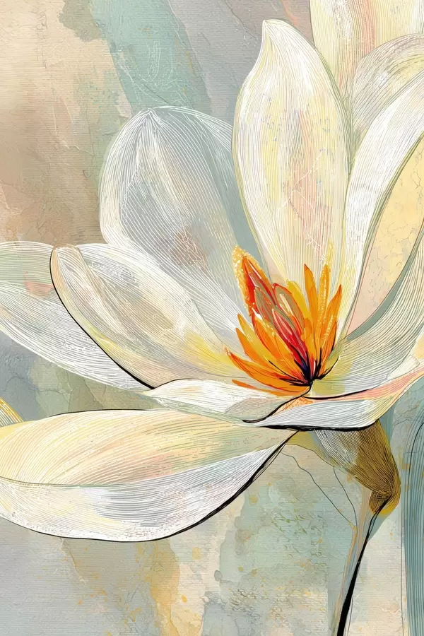 Poster Magnolie astratte in una tavolozza pastello con enfasi sulla grafica lineare Nr f47970