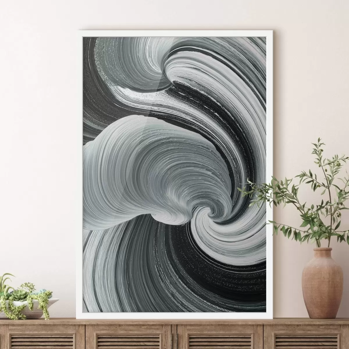 Poster Energia del movimento: astratto in bianco e nero in stile pittura a olio Nr f47990