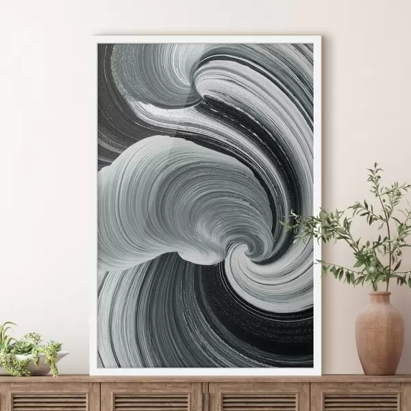 Poster Energia del movimento: astratto in bianco e nero in stile pittura a olio f47990