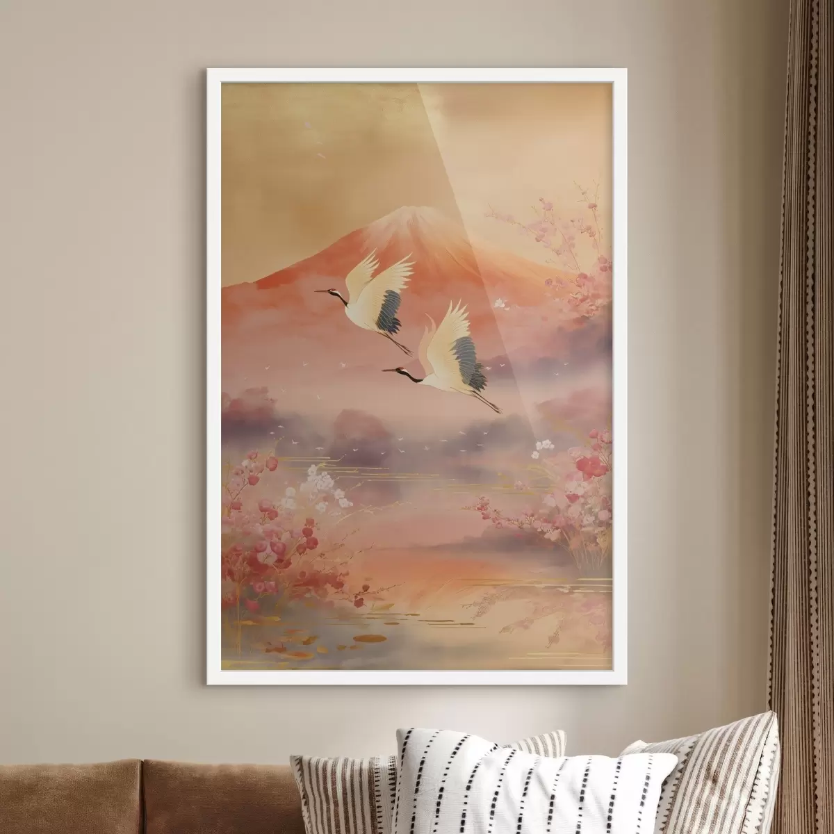 Poster Motivo tradizionale orientale con fiori di ciliegio e gru Nr f47991