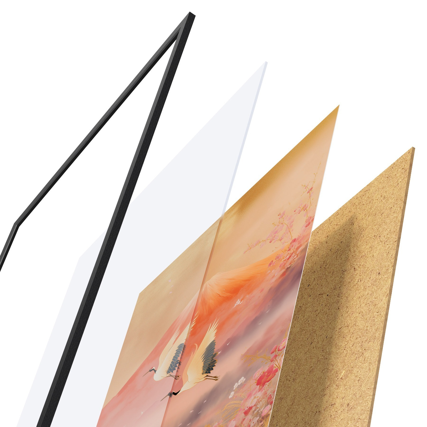 Il poster è composto da cornice, plexiglass, immagine stampata e supporto in truciolato. Il poster può essere immediatamente appeso alla parete grazie ai supporti sul retro.