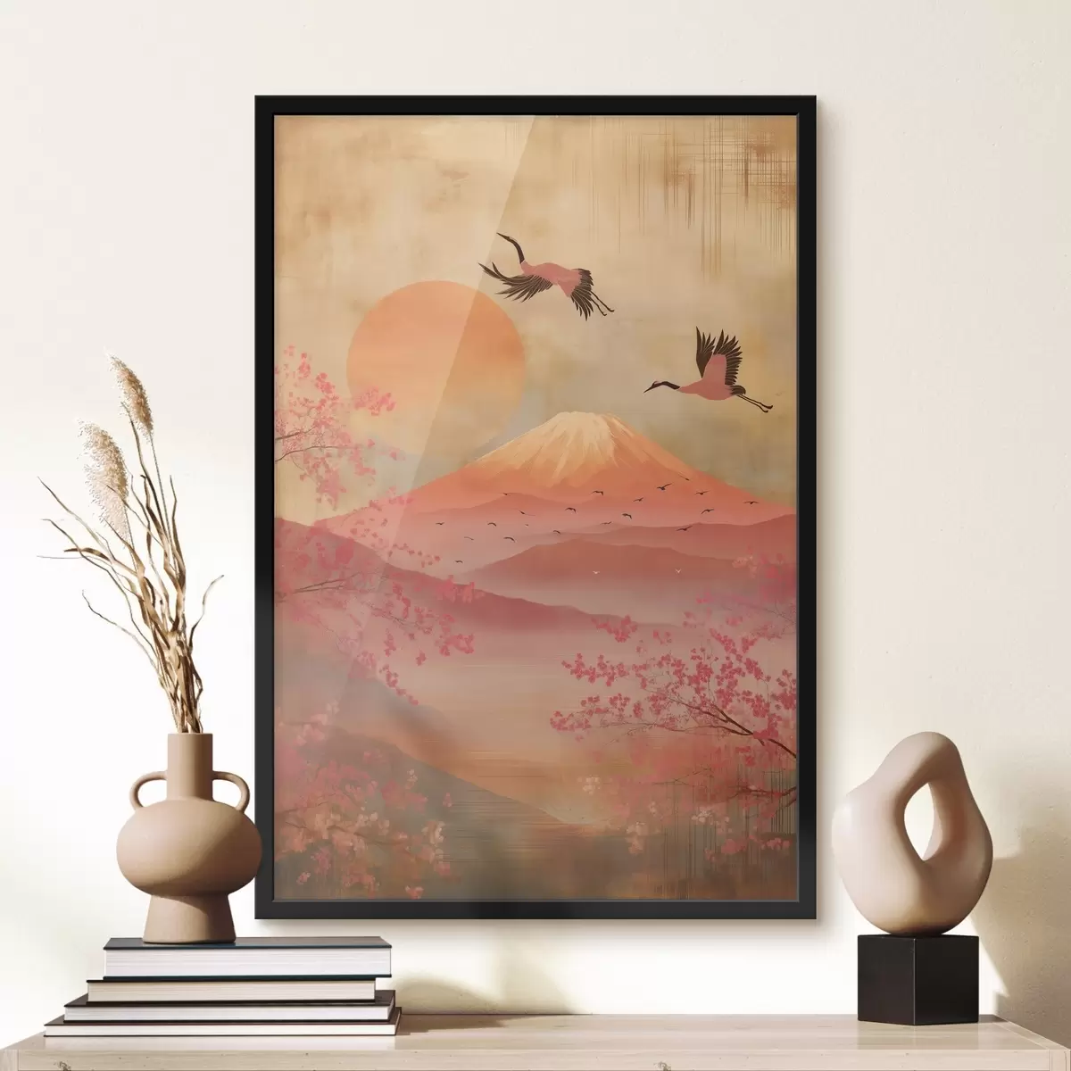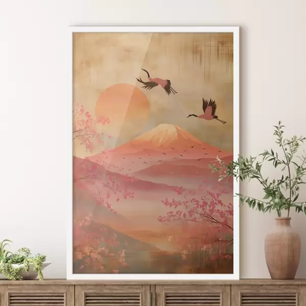 Poster Gru contro il sole e le montagne: illustrazione in stile arte digitale Nr f47992