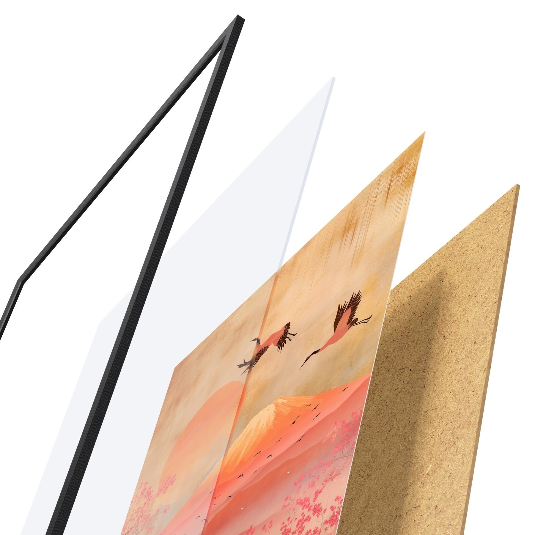 Il poster è composto da cornice, plexiglass, immagine stampata e supporto in truciolato. Il poster può essere immediatamente appeso alla parete grazie ai supporti sul retro.