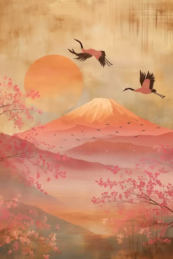 Poster Gru contro il sole e le montagne: illustrazione in stile arte digitale Nr f47992