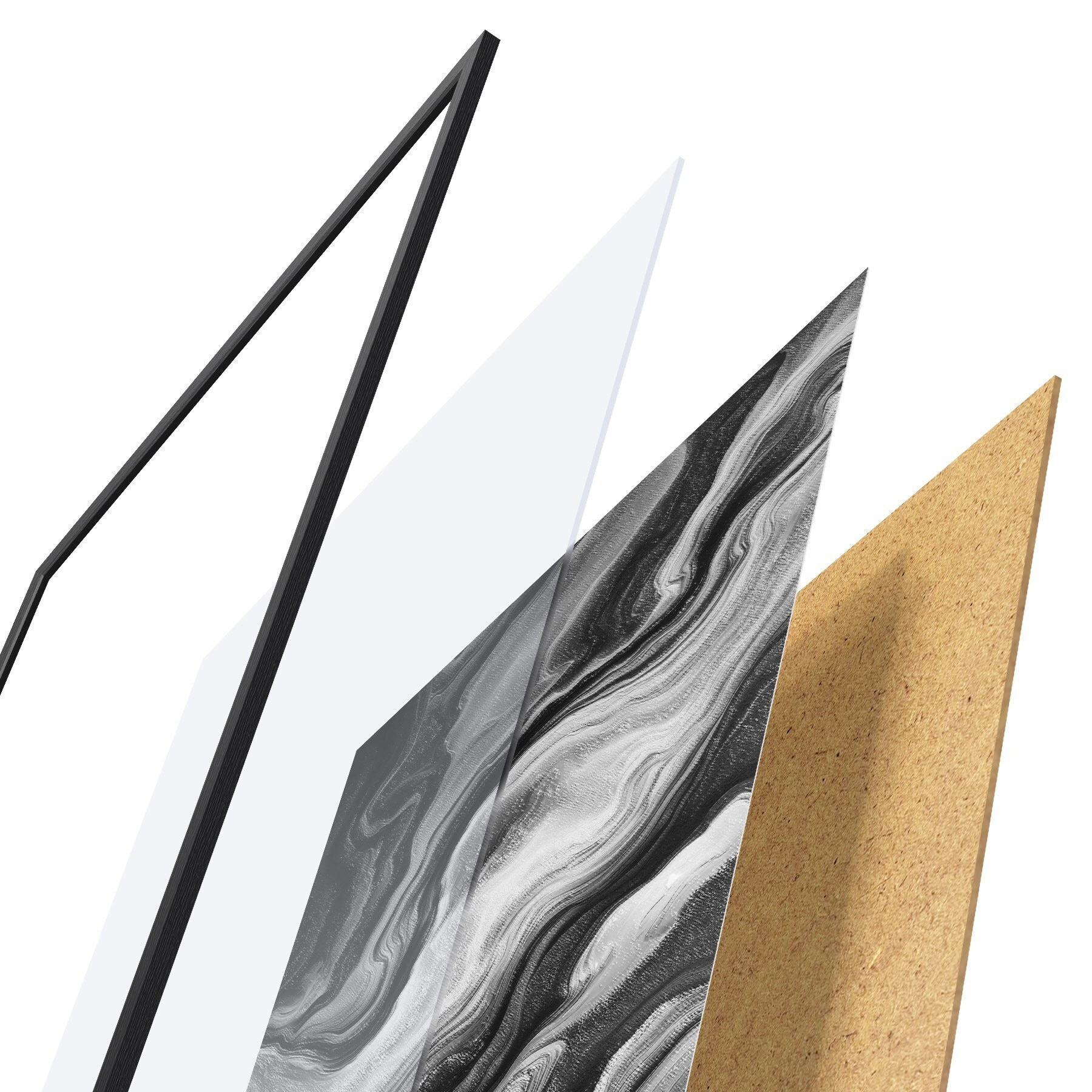 Il poster è composto da cornice, plexiglass, immagine stampata e supporto in truciolato. Il poster può essere immediatamente appeso alla parete grazie ai supporti sul retro.