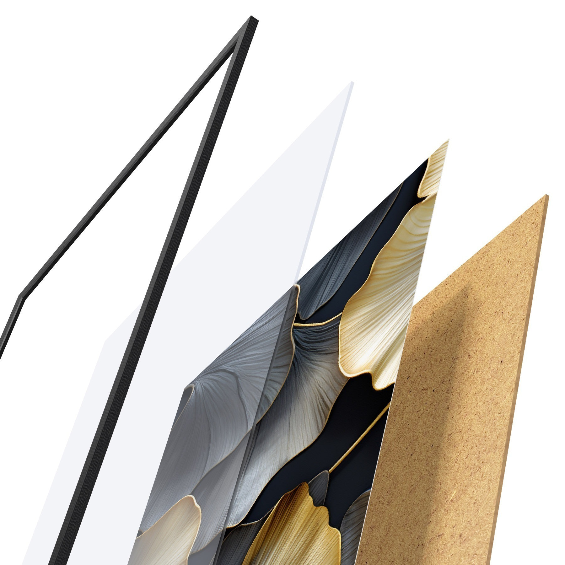 Il poster è composto da cornice, plexiglass, immagine stampata e supporto in truciolato. Il poster può essere immediatamente appeso alla parete grazie ai supporti sul retro.