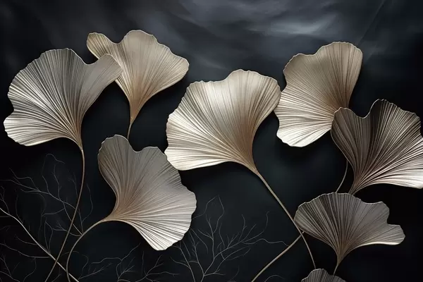 Poster Foglie di ginkgo su sfondo scuro Nr f48008