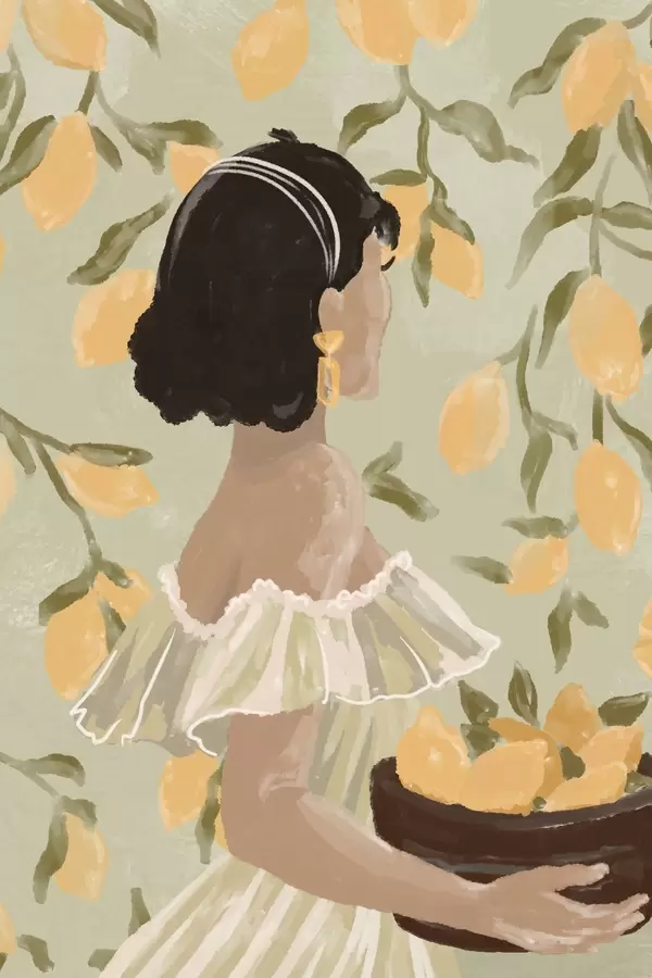 Poster Donna che tiene una ciotola di limoni per i rami f48023