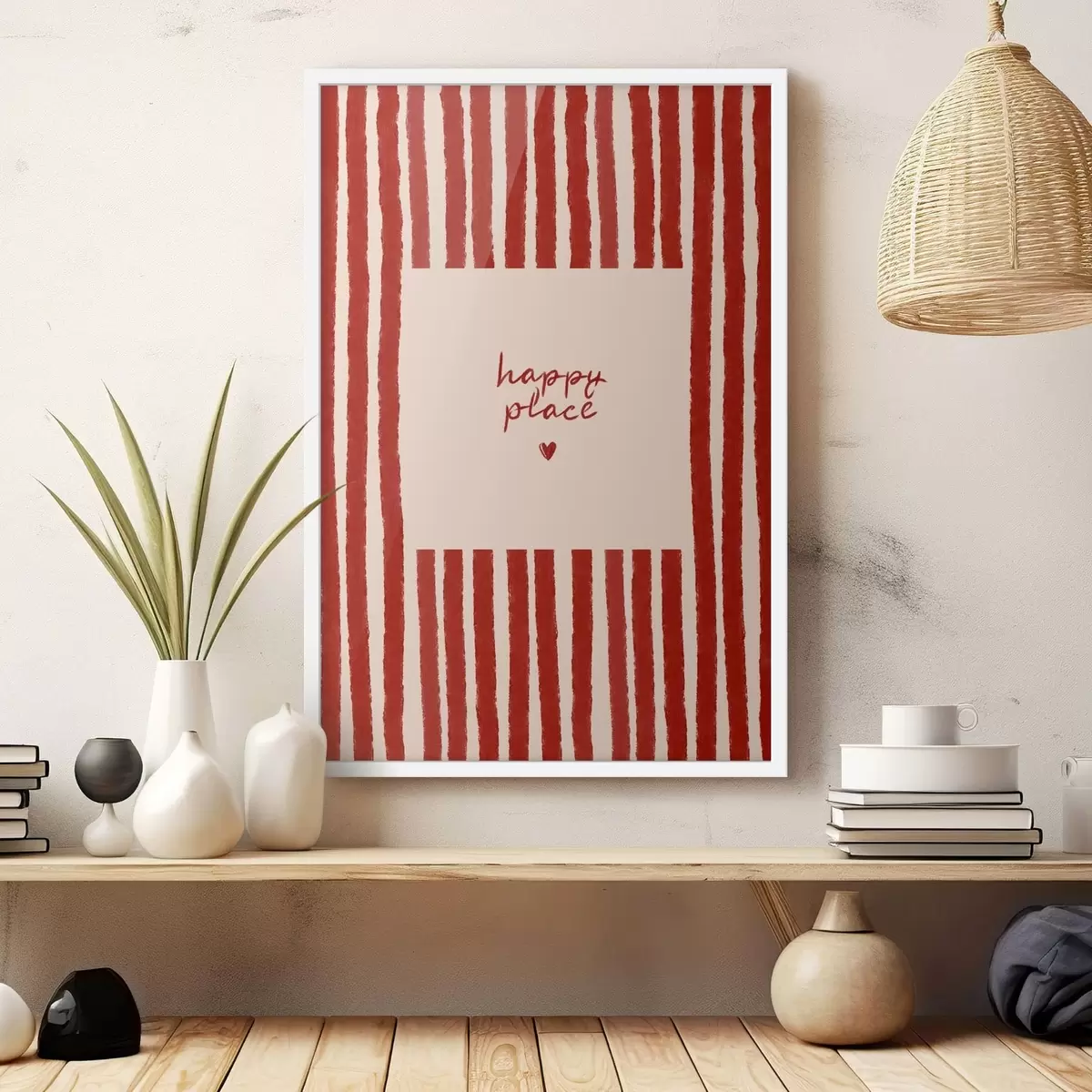 Poster Strisce rosse con testo "happy place" Nr f48025